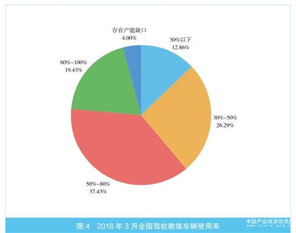另外一组数据显示,截止到2016年,我国共有机动车驾驶员培训机构16512户,机动车驾驶教练员87.1万人,教学车辆72.7 万辆。按照每台教练车每天可培训8 小时,每个学员需要在教练车上接受培训不少于40 个学时的数据模型计算得出,驾培行业年培训能力超过 5000 万人次。从编委会对全国驾校教练车辆使用率问卷调查的情况看,12.86%的驾校教练车辆使用率在30% 以下,26.29% 的驾校教练车辆使用率为 30%-50%,这再次证明了各驾校内部资源配置过度、产能利用率低、生产资料浪费较大。