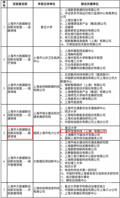 2018年度上海市大数据联合创新实验室试点名单