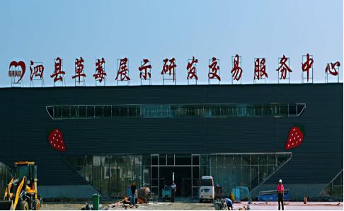 3、电商物流业:以草莓、小方子花生、贡米、西瓜等特色农产品为资源,依托电子商务平台,加快启动“墩集镇创新型现代化农业先行区--万亩草莓产业基地“服务中心”建设。“服务中心”规划占地34.5亩,计划打造集采摘,办公、交易、培训、休闲为一体的现代化“服务中心”。规划建设草莓、蔬菜瓜果交易大厅,电商中心,商业洽谈室,技能培训室及草莓展示馆等场馆,场馆顶层建设光伏发电设备,通过光伏发电提供园区生活、办公及亮化用电,余电并入国家电网。园区采用动力电和光伏发电互转换使用。利用3-5年时间,全力打造循环农业、创意农业、农事体验于一体的新型田园综合体。
