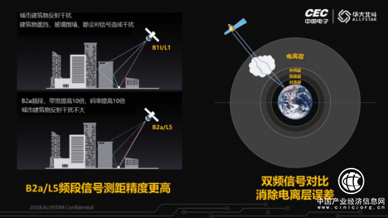双频定位是如何在复杂城市环境中提升定位精准度的呢?据专家介绍,影响定位精度的主要因素是电离层延时和建筑反射干扰。一般来说,频段信号的带宽越高,码率越高其受折射和反射的干扰就较少。手机传统定位方案只能接收单频(B1I/L1)信号,带宽不够,易受建筑物反射干扰影响。而在双频定位方案中,新增的频段信号(B2a/L5)带宽高、码率大,折射及反射对其影响不大;同时不同频率信号通过电离层时的折射率不同,通过对比两路信号的延迟,用计算来消除电离层带来的误差,将会使定位精度得到进一步提高。