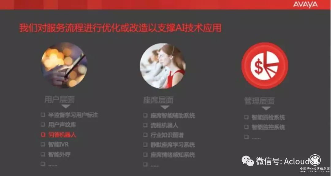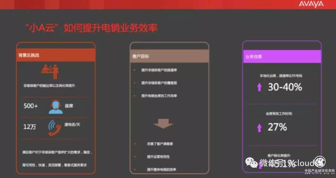 “引入云计算技术将平台轻量化、虚拟集中化、客户接入手段多样化、服务人员分散化的客服中心;叠加基于行业数据管理营销服务、分析体系形成的主动+AI识别差异化服务模式;结合人工智能‘辅助人工’、利用AI优化流程监管;通过AI+BI建立数据分析模型,让管理可视智能化的系统,构建了一个‘全新’并完整的保险行业客户服务体系。”Avaya大中华区云业务总监李炯在以《场景+数据: 保险客服智运营慧服务》的主题分享中表示,“Avaya‘小A云’利用智能IVR、语音识别、自然语义处理NLP等AI技术,为客户提供语音机器人服务。可用于与客户的初次沟通,筛选高潜客户,再流转给人工座席进行服务跟进。使电话服务的接通率提高为30%-50%,增加了坐席人员的单位产能。”