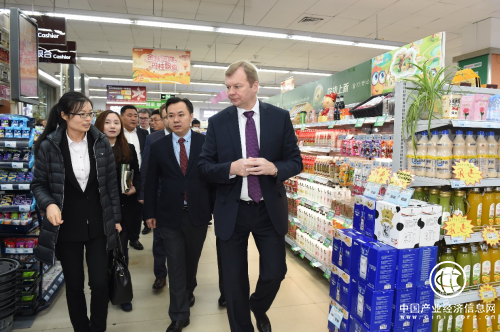 访问期间,多玛涅夫斯基一行还参观考察了苏果好的便利店、解放路生活超市。多玛涅夫斯基一行重点了解了门店生鲜的种类、进货渠道、销量等情况,并对店内引进的自助收银机、刷脸支付等数字技术表示赞许。