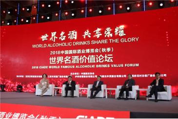 酒博会开幕当天下午,以“世界名酒﹒共享荣耀——天人合一,美美与共”为主题的“世界名酒价值论坛”隆重举行。论坛由中国酒业协会主办,宜宾五粮液股份有限公司、江苏洋河酒厂股份有限公司、泸州老窖股份有限公司、安徽古井贡股份有限公司、山西杏花村汾酒厂股份有限公司协办。