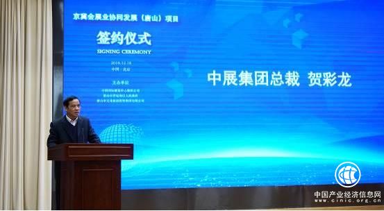 中展集团总裁贺彩龙在致辞中表示,在今天国家隆重纪念改革开放四十周年这个有着十分重要意义的日子,我们举办京冀会展业协同发展(唐山)项目签约仪式,是以习近平新时代中国特色社会主义思想为引领,乘国家深化改革、扩大开放的东风,进一步贯彻落实京津冀协同发展战略、深入推动会展产业转型升级、促进地方经济发展和对外开放的实际举措。推动区域协调发展,需要在政府的引导和大力支持下,充分发挥行业协会和企业的市场主体作用,优化资源配置,实现更加均衡、高质量的发展。展览业是现代服务业的重要组成部分,需要主动作为,落实国家京津冀协同发展战略,同时充分利用京津冀协同发展的良好条件,赢得更广阔的发展空间和更大的发展机遇。中展集团作为贸促会下属企业,在京津冀会展业协同发展的大背景下,积极发挥示范和引领作用,推动京津冀会展业协同发展,促进区域会展产业结构优化,为区域会展业和经济社会的高质量发展贡献自己的力量。