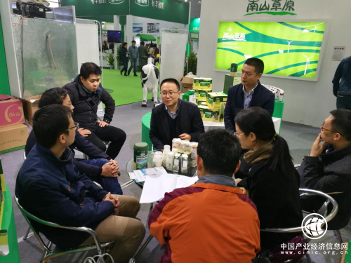 南山牧业董事长姚慧(中)与奶业专家共商“科技兴奶”