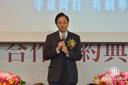 △ 中华民族致公党主席、沃华国际董事长陈柏光在合作缔约典礼上致辞