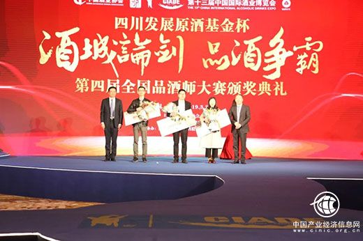 ▲中共泸州市委常委、副市长刘春、中国酒业协会副理事长兼秘书长宋书玉揭晓冠、亚、季军获奖名单