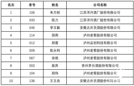 3月21日至3月22日,为期两天的“酒城论剑·品酒争霸”全国品酒师大赛,来自全国的国家级白酒评委经过激烈的角逐,前三名选手脱颖而出。他们分别是来自江苏双沟酒业股份有限公司的朱方刚、来自苏酒集团贸易股份有限公司的陈力、来自安徽古井贡酒股份有限公司的李玉勤。