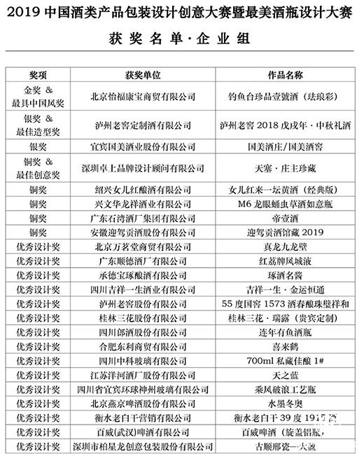 3月23日举办的2018年度“青酌奖”酒类新品评选活动和酒类产品包装设计大赛暨最美酒瓶设计大赛,经过行业专家和自全国各地的经销商代表、消费者代表以及媒体代表共同评选,坚持公正、公平、公开的原则,保持高标准和科学性的准则,最终获奖产品也顺利产生。在此,对获奖个人以及获奖产品表示诚挚的祝贺!