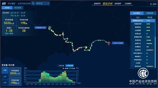 该平台的“综合分析系统”可谓是一个智慧“大脑”,它依托GIS可视化、大数据分析等技术,打造了“一动三静、宏微结合”的公交大数据分析平台。“一动”指的是公交运营动态信息监测,能够宏观掌控当日实时的运营班次、里程、客流量、在线率和运营速度等五大核心指标,并聚焦到具体线路和车辆,为企业运营和政府部门监管提供数据支持。“三静”是从公交行业积累的海量数据入手,分客流分析、基础资源、运营服务三个方面对行业的发展态势进行分析,可定期自动统计公交企业运营的各项指标,为行业决策、政策制定提供了全面、详实的数据保障。