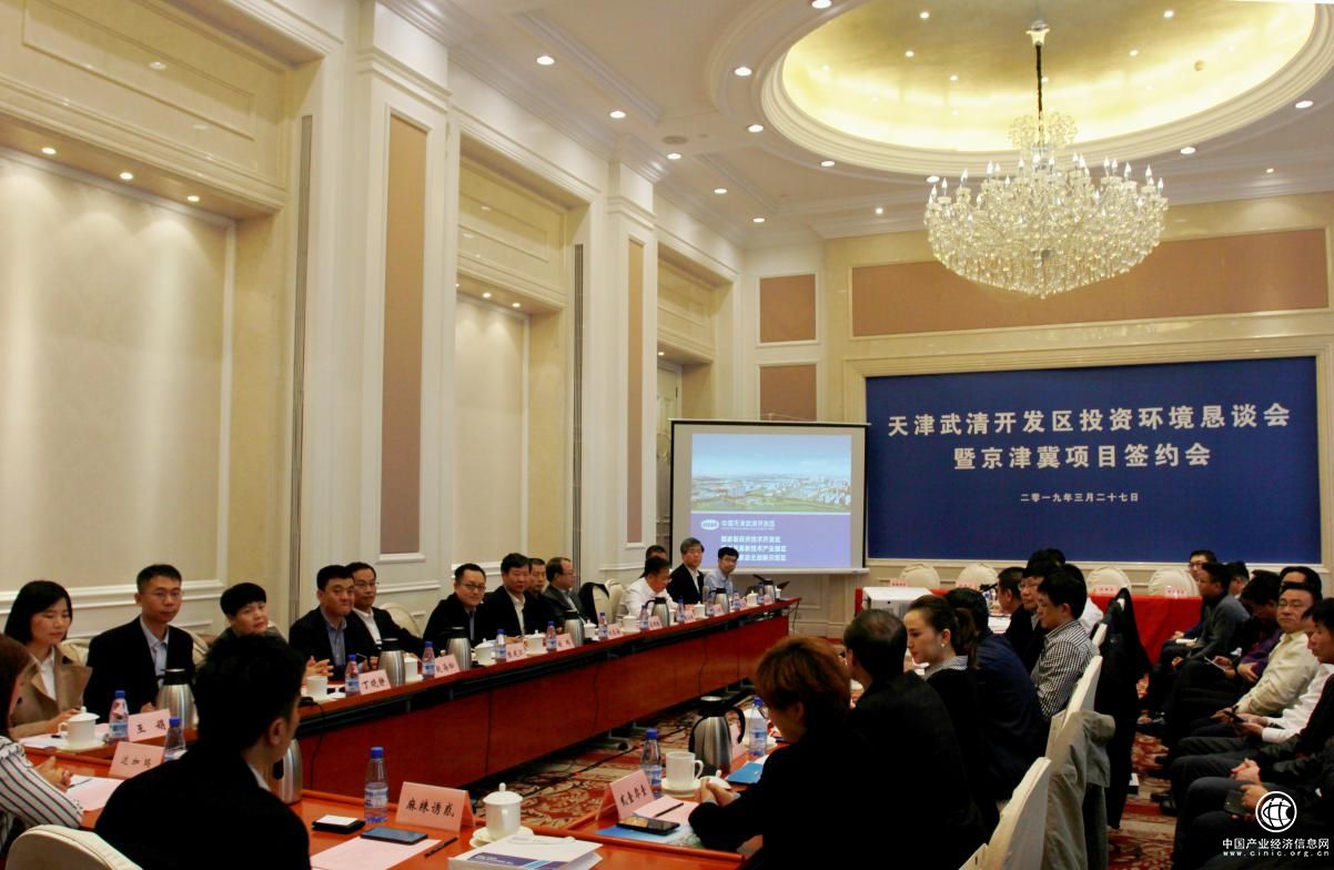 3月27日下午,武清开发区投资环境恳谈会暨京津冀项目签约仪式在市政府驻北京办事处举行。副区长刘东海出席会议并讲话。市政府驻京办、合作交流办,武清区委宣传部、区发改委、区合作交流办、区卫健委、区人力社保局、区市场监管局、区税务局、区科技局等部门和武清开发区有关负责同志出席。京津冀企业家代表共60余人参加。