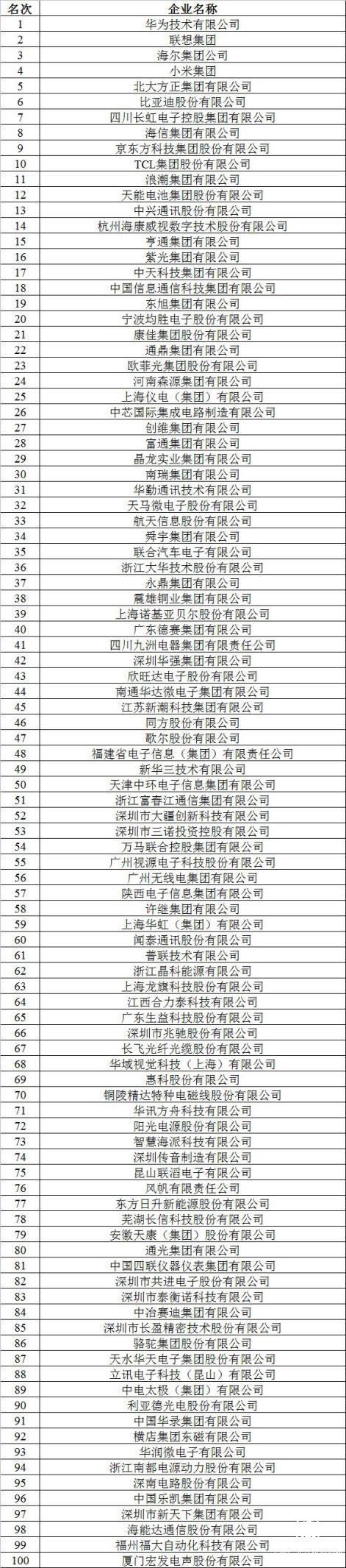 附:2019年(第33届)电子信息百强企业