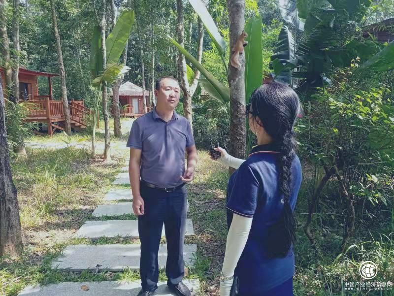白沙黎族自治县旅游和文化广电体育局局长赖伟(左)接受采访