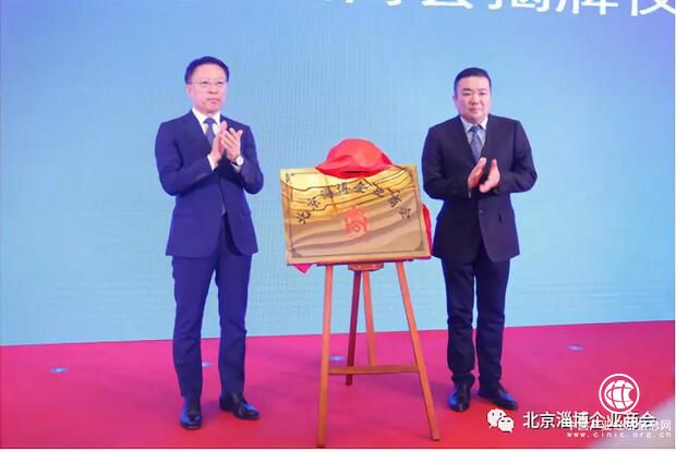 淄博市委书记江敦涛(左)和北京淄博企业商会会长栾贻明共同为商会揭牌