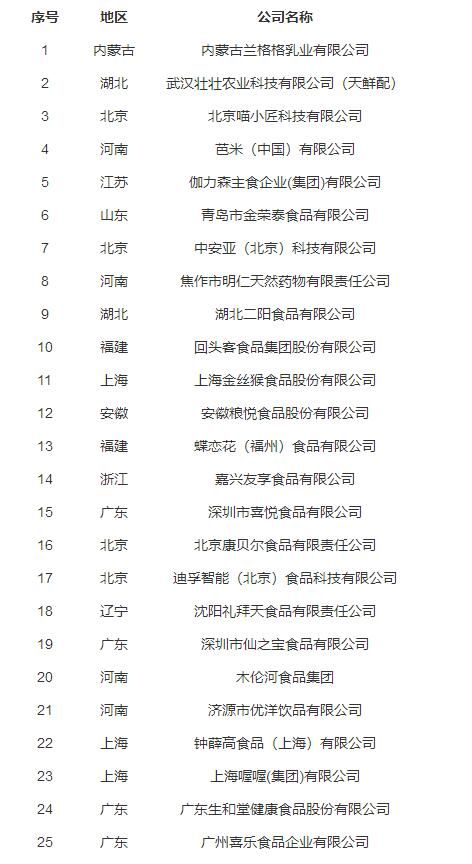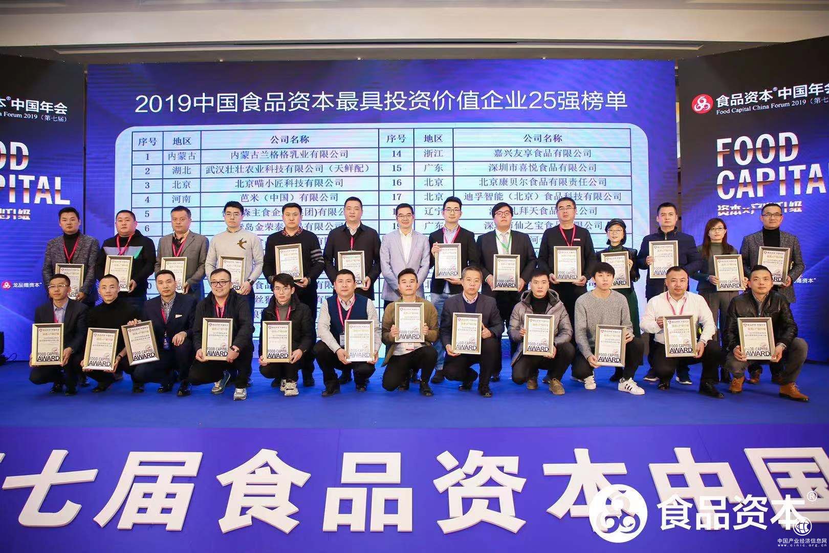 以下为“2019中国食品资本最具投资价值企业25强”榜单
