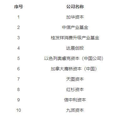 以下为“2019中国食品资本十大投资机构”榜单