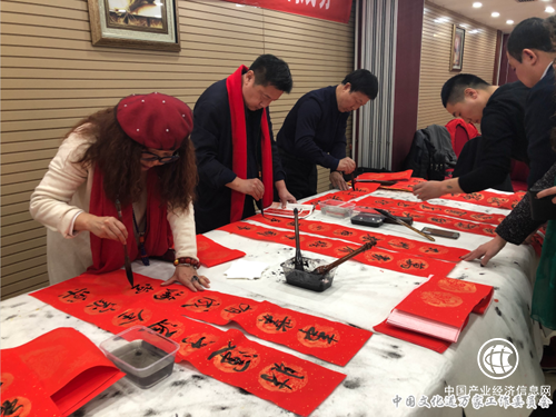 1月16日下午,中国文化进万家“迎春写福”交流活动在北京举行。会上,书法家们精心创作了饱含中华优秀文化气息的“福”字和春联。据悉,本次创作的作品将赠送到中央和首都各机关等单位,为首都营造良好的节日氛围奉献一份力量。
