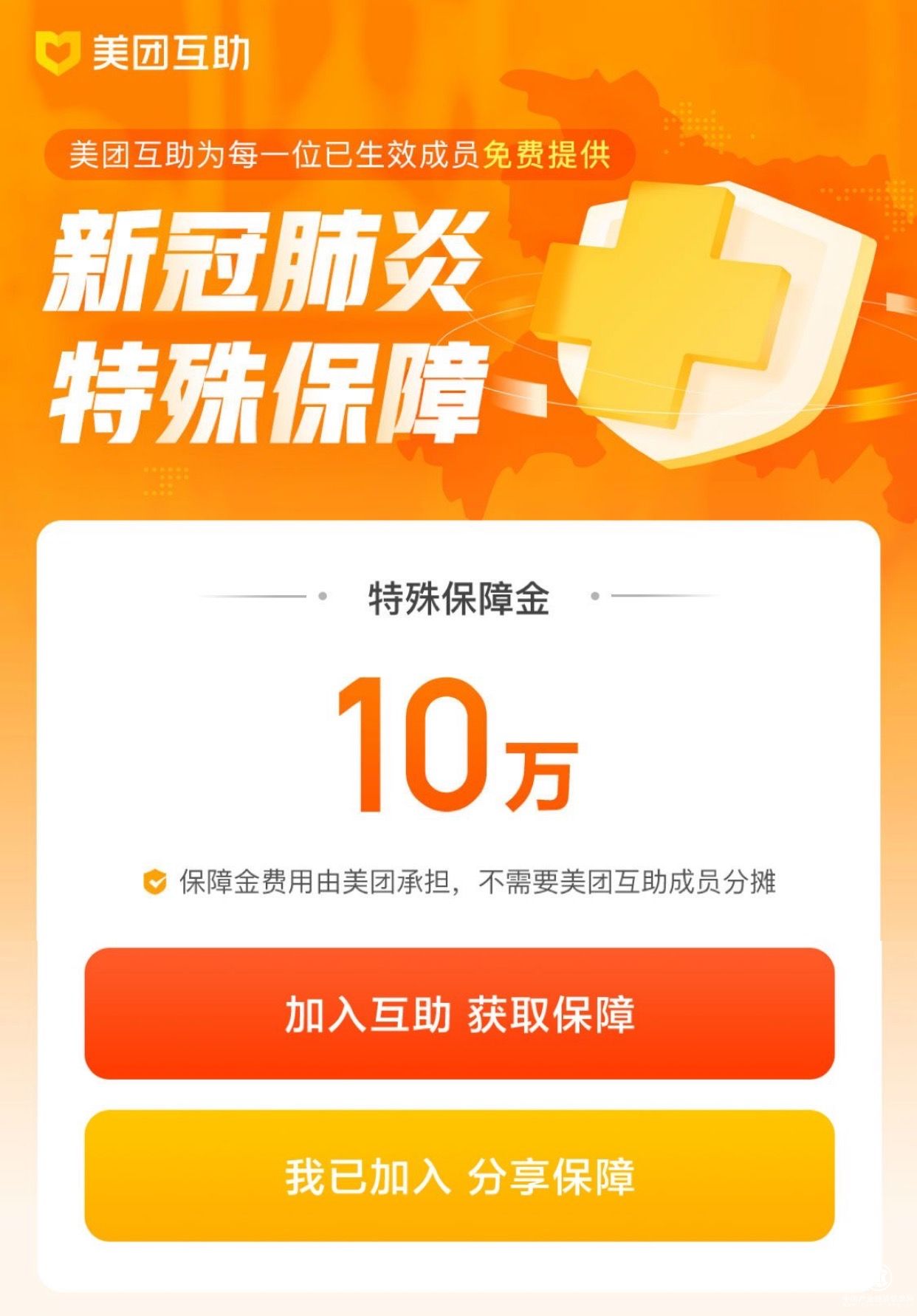 按照美团互助官方信息显示,成员加入计划时未疑似感染或确诊为“新冠肺炎”,后因确诊感染2019新型冠状病毒感染的肺炎导致身故,即享有10万元身故保障。保障时间自官方发布日起至之后180天(含180天)或被保障人互助计划终止日。