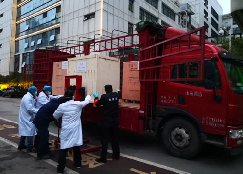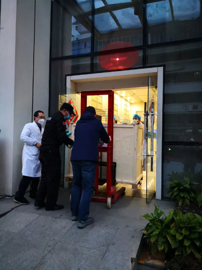 2月26日专车抵达武汉,设备分别送至武汉协和医院本院、武汉协和医院西院、武汉协和医院所管方舱医院等院区传染病病房。在武汉当地合作伙伴的帮助下一起完成设备的装机工作,并为协和医院的教授们提供设备的使用指导。