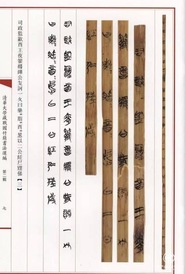 《清华大学藏战国竹简书法选编》的一个特点,就是编写者为了方便书法爱好者的学习,在每一篇之后都有对文字的特点的分析和书法风格的简要概述。这部书分别由李学勤先生和他团队中的李均明、沈建华、赵平安、李守奎、刘国忠、马楠编写,这些老中青三代的古文字学家们,分别以各自的视角对每一篇竹简的文字和书法特征,作出了各自的阐释。这对于临习者理解和认识不同篇章的书法风格,无疑是有一定的帮助。竹简图版的清晰和附加的文字图像,是这本书的另一个特点。在国内简牍摄影和图像处理的技术上,贾连翔博士属于后来居上的佼佼者,全书的竹简图版全部由他操刀,也保证了这部书高水平的图版质量。