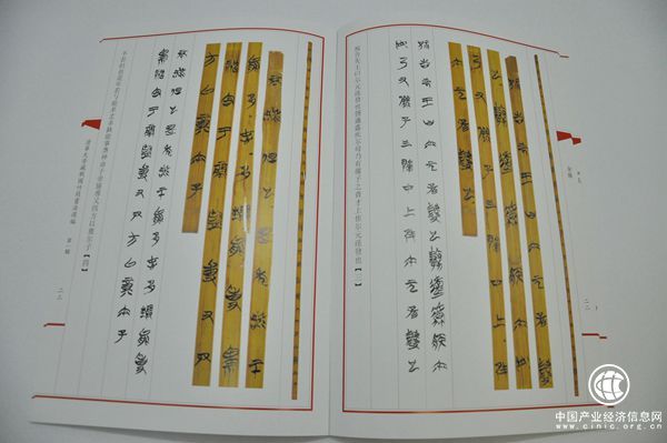 最后不能不提到的,就是此书的装帧设计。每一页图版都有竹简近原大及放大照片,又附以文字图像和隶定文字,每一篇后再附上释文,特别方便临习阅读;而全书的朱丝栏,起到了整体和谐统一的效果。每辑四十几页,采用骑马钉,又适合置于案头阅读和临习。