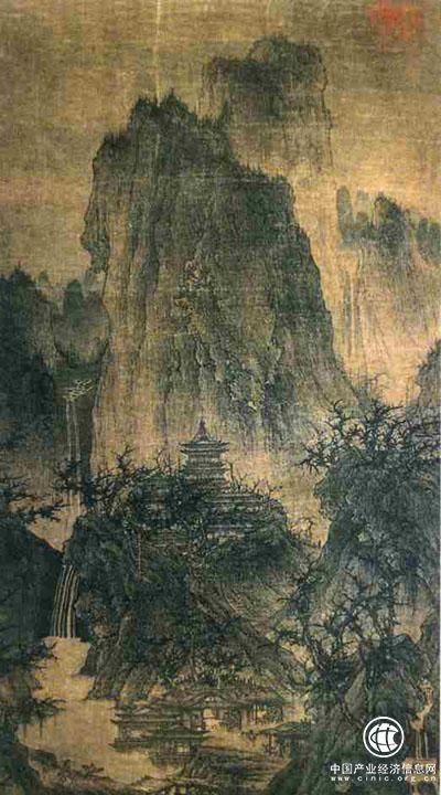 “从一些宋代的艺术遗存如宋瓷来看,宋代更多是画风景,这是历史上的第一次。画风景比画人或者是画物更难,如何用画展现远处的风景或者展现重叠式的远处风景,在10世纪这个挑战也是非常大的。”马麟提到北宋一个画家叫成,他的山水画艺术造诣很高,刘道醇《宋朝名画录》评他的画:“峰峦重叠,间露祠墅,此为最佳。至于林稠薄,泉流深浅,如就真景。”郭若虚在他的《图画见闻志》里面也说“夫气象萧疏,烟林清旷,毫锋颖脱,墨法精微者,营丘之制也。”在李成的著名作品《晴峦萧寺图》中,近处好像有两间餐馆,其中有一个是比较高级的餐馆,另外一个餐馆像麦当劳或者饺子店,是比较平民化的餐馆。“大家可以看到这些餐馆画得非常聪明,可以看到餐馆内部和旁白的一些布景,且对于距离的处理和远处山峦的笔法都是非常高明,能够创建出一个深浅距离的效果。”