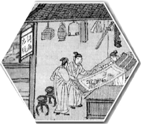 《卖书画的店肆》《清明上河图》局部 仇英 图片选自《风雅之好——明代嘉万年间的书画消费》