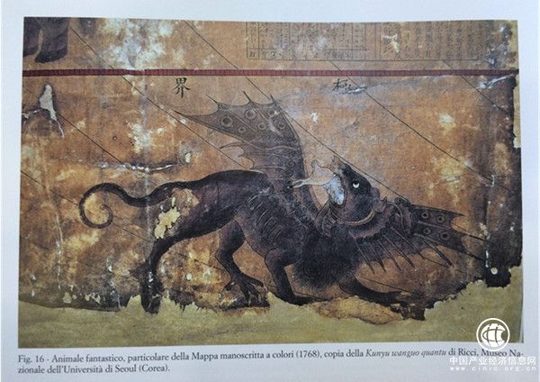 中国版的《坤舆万国全图》中,有翼兽接近于中国传统瑞兽“辟邪”。
