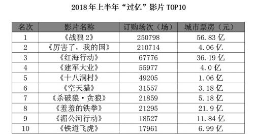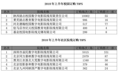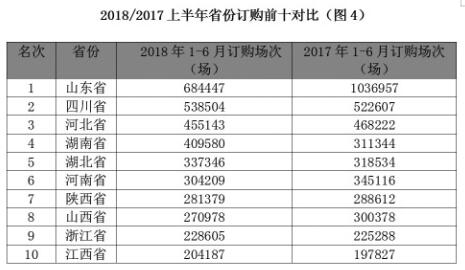 从院线情况看,订购前十的院线与2017年同期相比基本一致,重庆惠民院线时隔一年重归榜单,福建中兴、广西八桂等院线订购涨幅较大,浙江新农村院线跃居半年订购冠军,成为院线订购的最新主力担当。