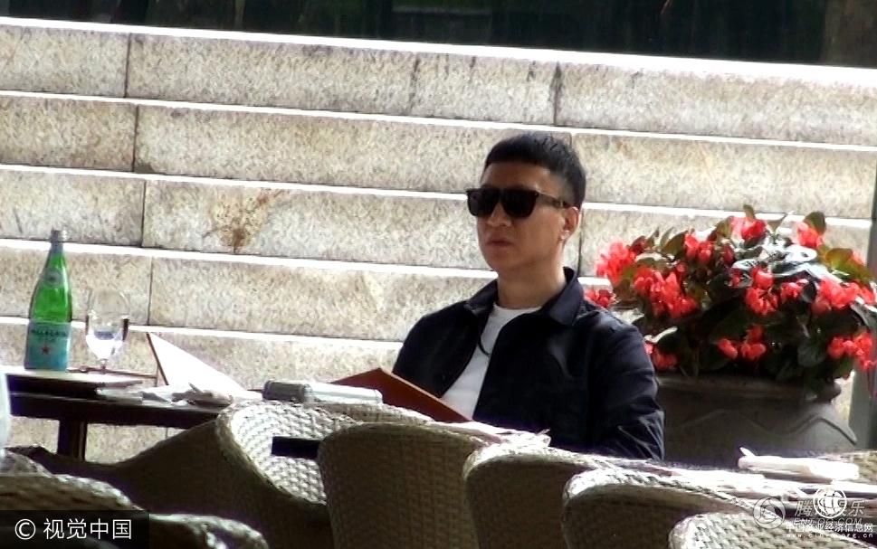 视觉中国讯 近日,孙红雷和妻子王骏迪前往酒店附近的露天餐厅吃饭。戴着黑超的他气场十足,就餐后拿出笔记本电脑,一边工作一边和太太聊天。