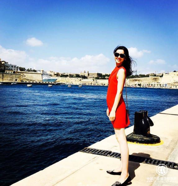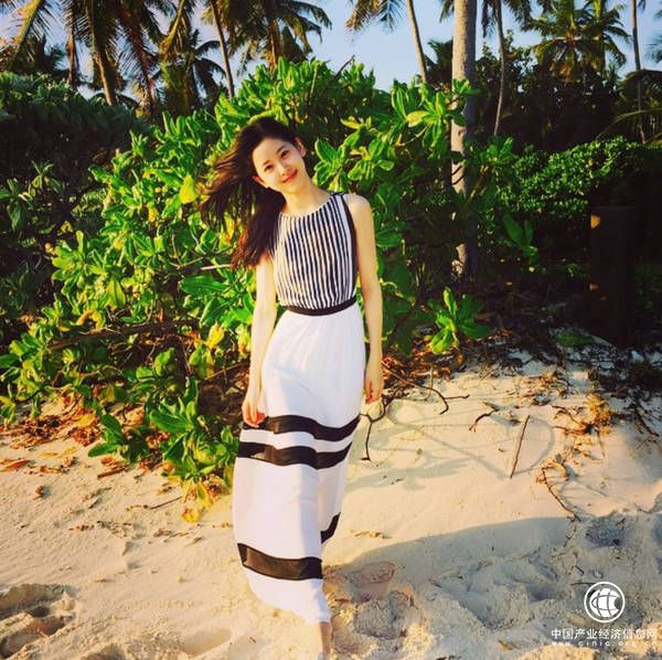 章泽天一袭长裙少女十足。