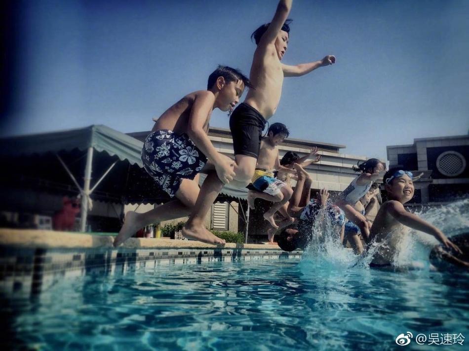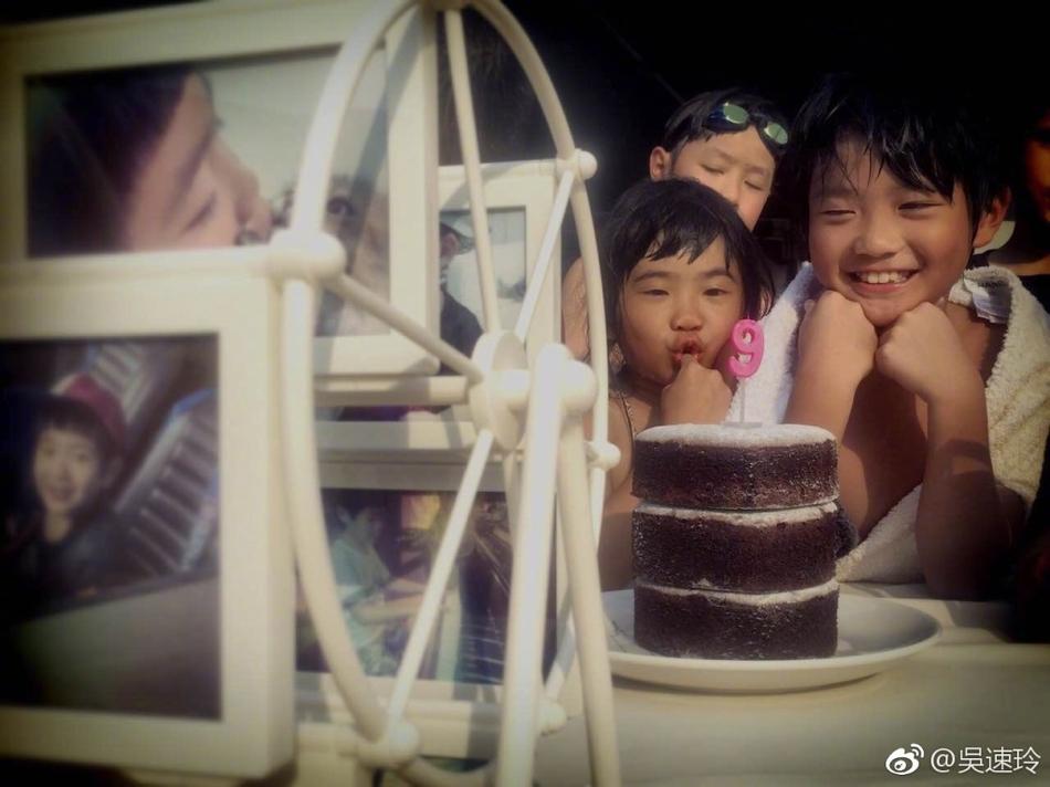 日前,曹格娇妻吴速玲在微博晒出一组为儿子Joe举办泳池趴庆生的照片。照片中,Joe闭眼许愿,帅气露甜笑,十分满足。
