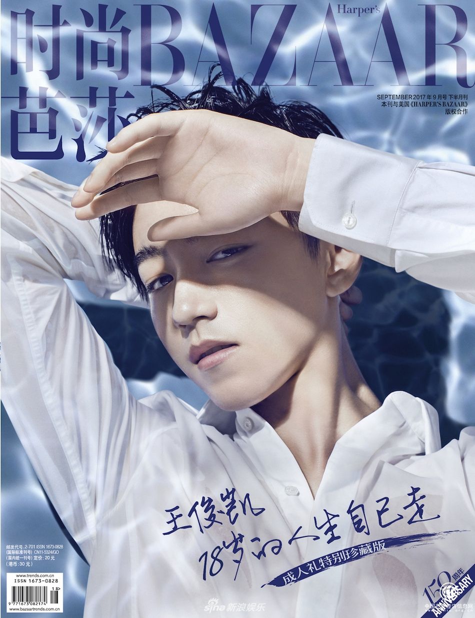 日前,王俊凯献出单人时尚封面首秀。不满十八岁的他首次拍摄即空降九月刊慈善双封,成为此杂志史上年龄最小的单人封面人物。该期杂志今日上线即连破时尚杂志三大销售记录。