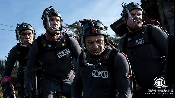 在他看来,《猩球崛起3:终极之战》最大的特色,正是动作捕捉技术在影片大部分角色中的运用,也令全片95%的镜头都需要特效处理。每一只猩猩,都是穿着工作服的演员所饰演的。工作服上分布着含有红外LED灯的硅树脂,LED灯的闪光能够被摄像机所捕捉,而且是“越亮越好,闪光时间越短越好”,这样才能捕捉得更加清楚。