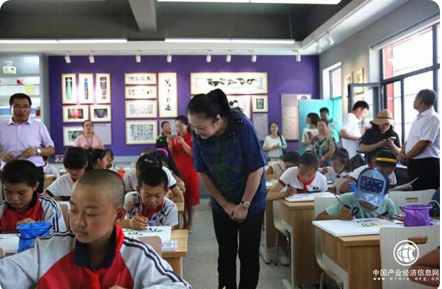 7月17日上午,银川市委副书记周云峰,永宁县委书记钱克孝,永宁县委常委、宣传部长任丽琴,永宁县副县长马燕,韩美林艺术基金会秘书长、三地韩美林艺术馆总馆长周建萍,贺兰山岩画管理处主任张少志,以及永宁县众多美术老师,齐齐相聚在这里,共同庆祝“美林教室”的落成。