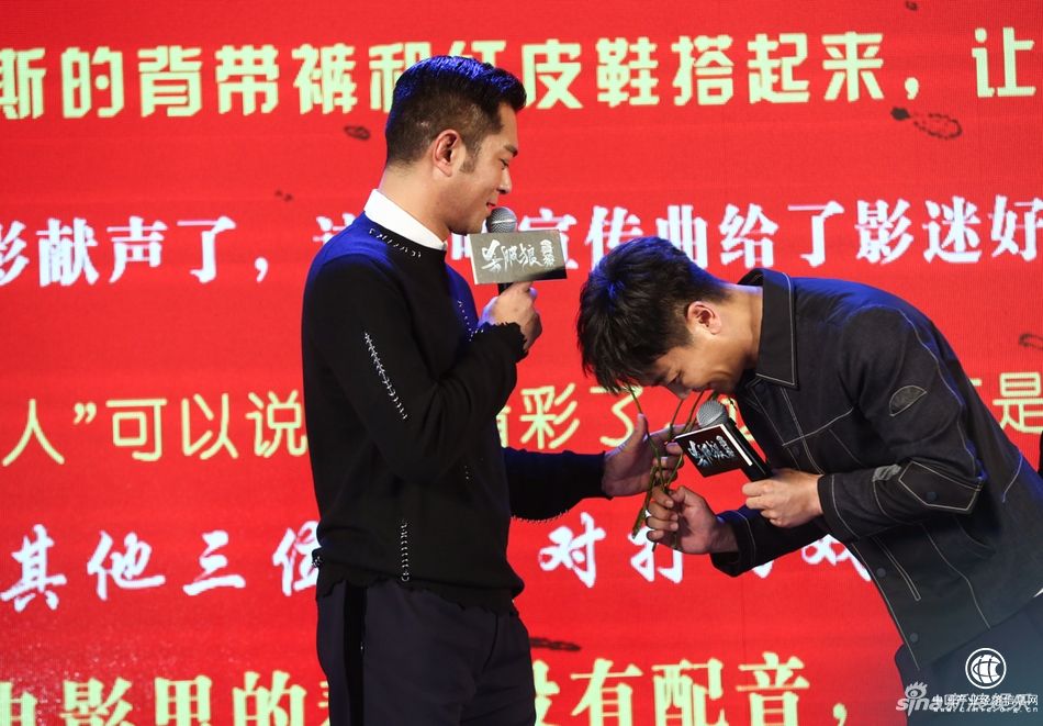 无论是影片物料还是首映发布会,都可见主办方的用心,他们想要打造“古天乐+吴樾”的兄弟CP,有基情更好,但无奈古仔太酷,不管吴樾全程怎么配合,两人都差一点火候。谈起那段合唱,古天乐表示:我知道是合唱,但是我跟他们说不要拍我,我很尴尬的。