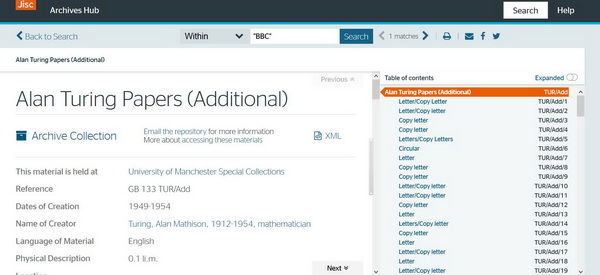 文件的整理、编目和存储由曼彻斯特大学档案管理员杰姆斯·彼得斯(James Peters)负责,现在这些文件已经可在网上搜索。