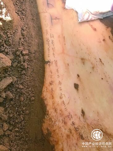 甲字形墓葬M13墓道填土中出土的有字卜骨。资料图片