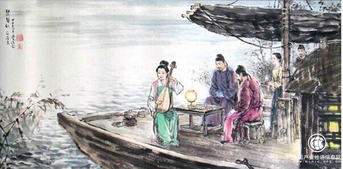 “大弦嘈嘈如急雨,小弦切切如私语。嘈嘈切切错杂弹,大珠小珠落玉盘。”将琴声比喻成雨滴,再将雨滴比作珍珠,琴声在作者的笔触间倾泻而下。(《琵琶行》白居易)