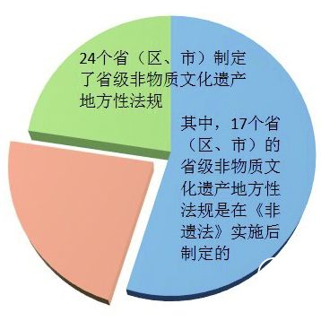 已有24个省(区、市)制定了省级非物质文化遗产地方性法规,其中,17个省(区、市)的省级非物质文化遗产地方性法规是在非遗法实施后制定的。