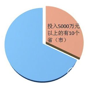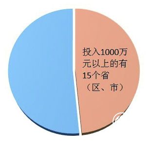 2015年,全国省级财政专项资金投入38719万元(含新疆生产建设兵团),省级财政平均投入1210万元(含新疆生产建设兵团)。2015年省级财政专项资金投入1000万元以上的有15个省(区、市)。