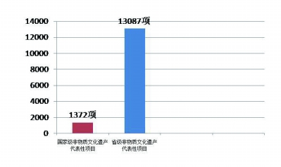 截至2016年,已公布国家级非物质文化遗产代表性项目1372项(不含子项),省级非物质文化遗产代表性项目13087项。