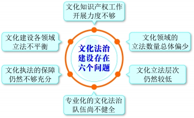 2015年召开的全国文化法治工作会议提出文化法治建设存在六个问题: