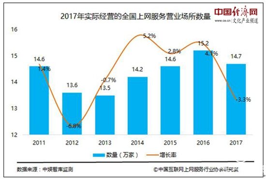 原标题:最新报告:我国上网服务行业2017年营业收入达708亿