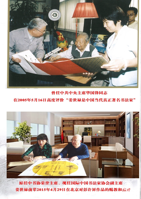 姜世禄(曾任中国书法家协会荣誉主席、中国书法家协会名誉主席,国际中国书法家协会【全国82家分会,国外11家分会】副主席)评:彭许屏先生创新书法:有变化、有创新、自成一体,风格独具,耐人寻味,看了还想看,百看不厌,回味无穷,乃系是百花齐放中一朵风姿妖娆之花。她是位非常的、而从不停下勤奋的真艺术人。-心月(姜世禄)。