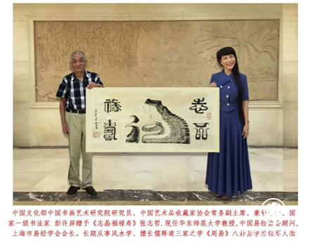 彭许屏国学导师-张志哲-长江三角洲易学界领军人物。原任华东师范大学教授,现任:上海交大国学中心主任、上海市《易经》学会会长、上海宗教文化研究中心主任,中国易经协会顾问、长期从事风水学、历史学与宗教学的教学与研究工作,擅长儒释道三家之学,注重于《周易》八卦的应用,把人生命运与自然环境、吉凶祝福与宗教文化结合起来研究,展现神秘文化的功能,是长江三角洲易学界领军人物-张老对彭许屏作品风格的评价是:在彭许屏书法作品中可见:实为阳,虚为阴;重为阳,轻为阴;劲为阳,媚为阴。重笔与轻笔,浓墨与枯笔,所体现着阴阳的对立统一关系,体现着"气韵"这一思想。正是《易经》氤氲观的"气化"理念,引申了书法创作的气韵审美观;变易观是《易经》活的灵魂,体现了书法创作的变化和创新;蕴含着书法创作的"天人合一"思想和精神内涵。