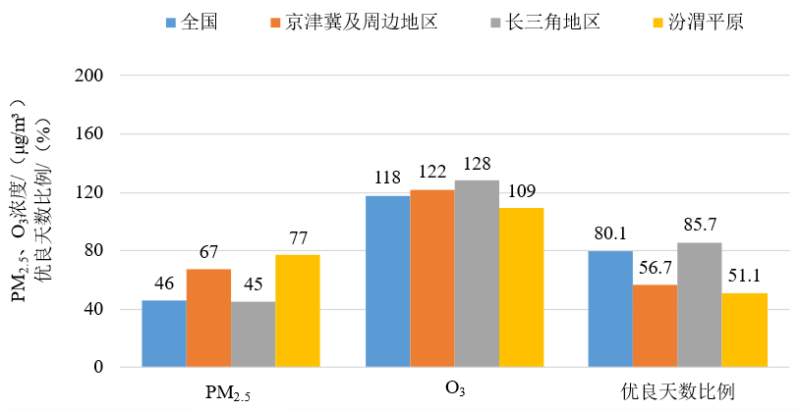 图3 2023年1—3月全国及重点区域空气质量比较