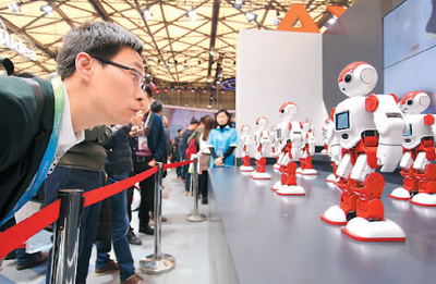 3月9日,在上海举办的2017年中国家电及消费电子博览会上,观众正观赏机器人现场对战,体验AR/VR游戏,感受未来智能生活。 本报记者 屠知力 摄