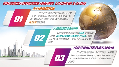 据悉,2018年版外商投资准入负面清单除了全方位推进开放、大幅精简负面清单外,还对汽车、金融等部分领域开放作出了整体安排。