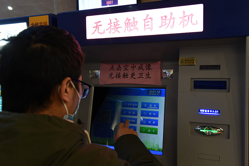 在位于合肥市的中国科学技术大学附属第一医院,就诊者使用“无接触自助机”(3月9日摄)。新华社发(周牧 摄)